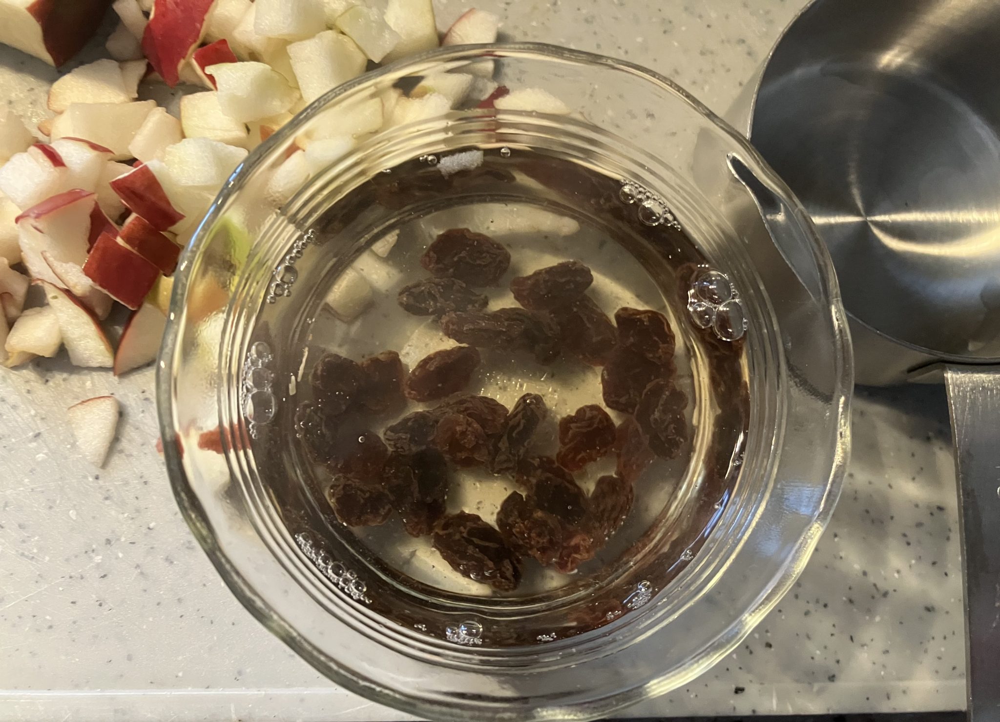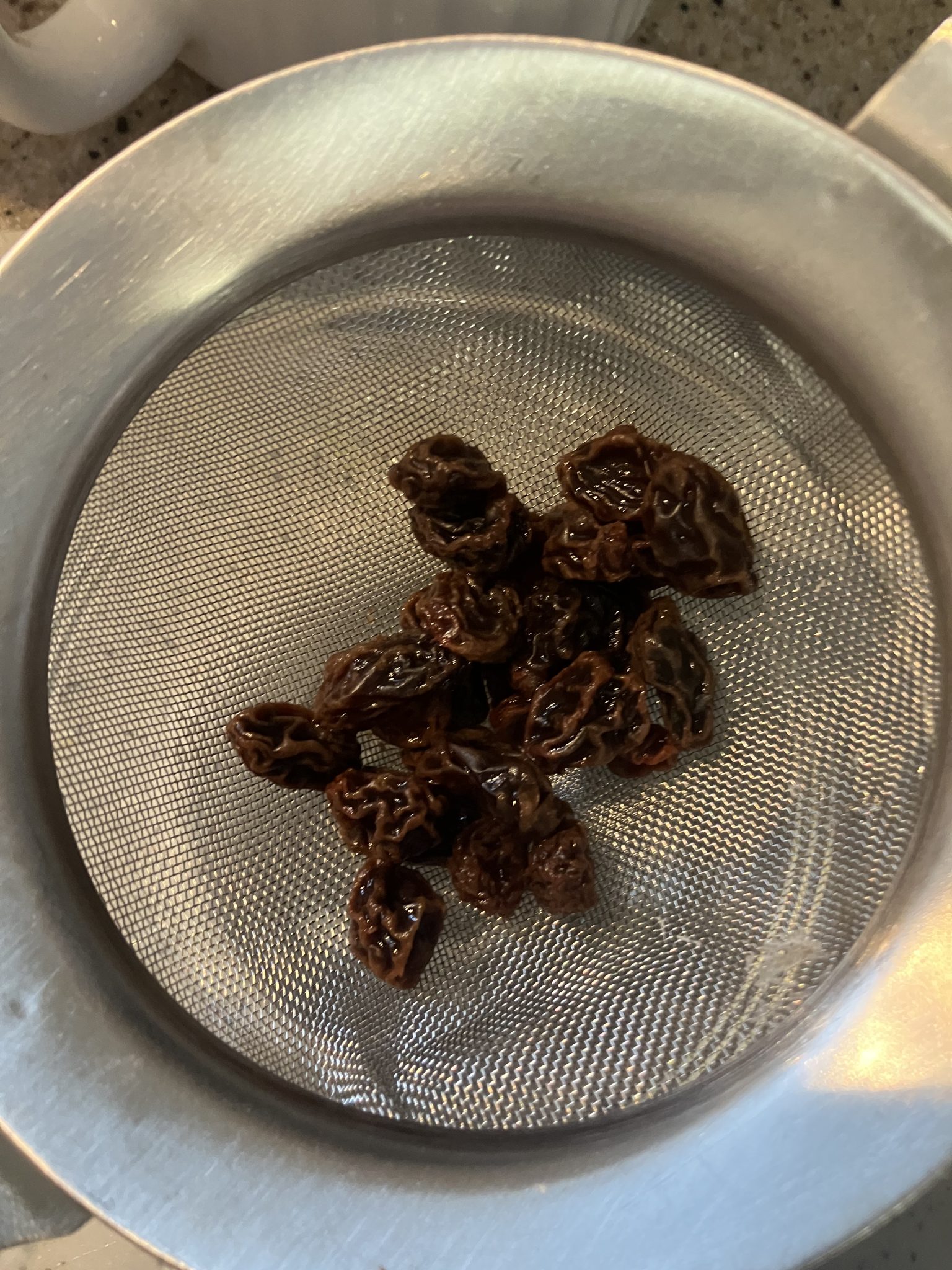 And then, a presto! Plumped up raisins! I have to say that the pictures don’t do them justice so you have to take my word for it that it the end result was better than what I started out with.